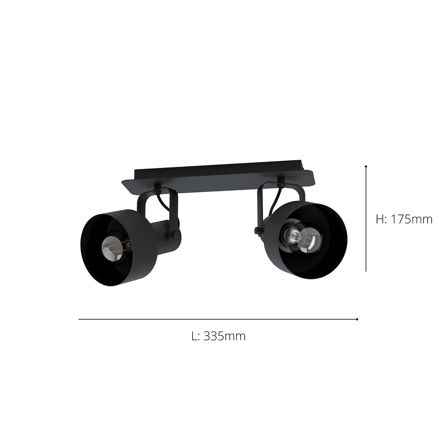 The CASIBARE ceiling light is made from black metal and features two adjustable black spotlights. With its monochrome design, the ceiling light blends seamlessly into modern interiors and provides stylish task lighting. The adjustable spotlights allow you to direct the light to individual areas of your room, whether the living room, bedroom, hallway or dining room. The product has E27 lamp holders and requires 2 x E27 lightbulbs, which are not included.