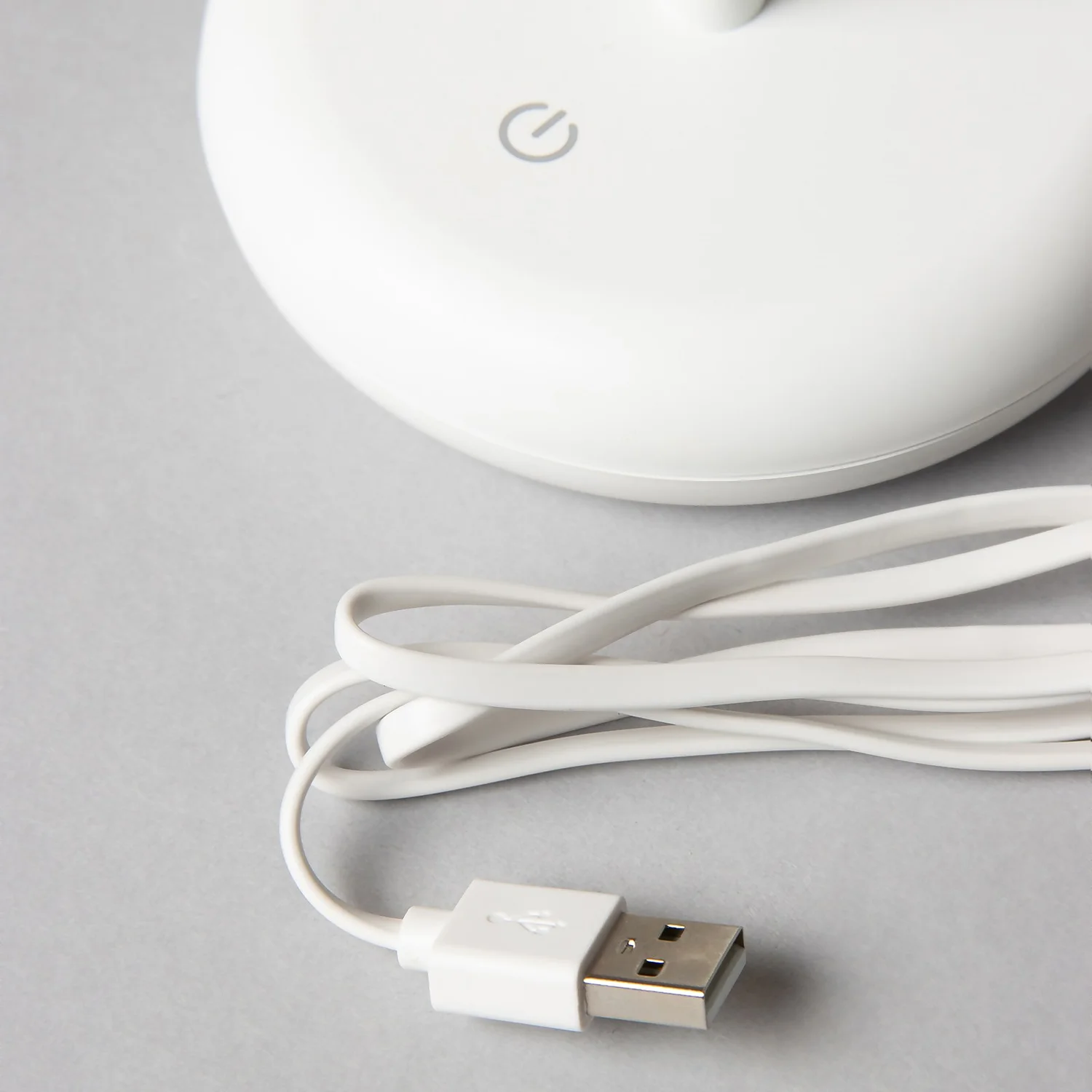 A slim LED rechargeable table lamp in white finish adds a simple addition to your home. The mushroom shape lamp is portable by using the USB cable to charge it, unplug and move the lamp in different locations within your home. It comes with a touch sensitive switch to turn on and off. LED bulb included.