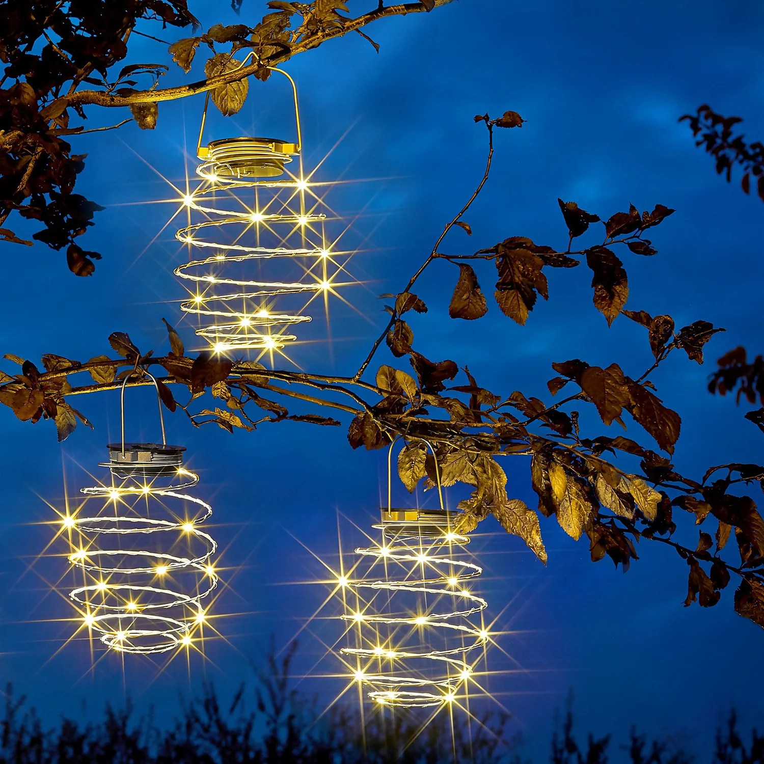 3 Pack Solar Spiralites. Ideal for hanging from trellis, parasols, border crooks and hanging hooks.